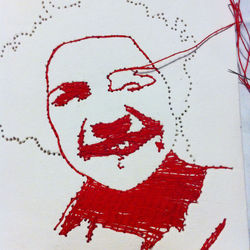 In fact, joining the dots represents the action of sewing and reconnecting the dots in order to reconstruct a photograph of my face, also a metaphor for an internal self-portrait since it expresses the artistic means that represents me.